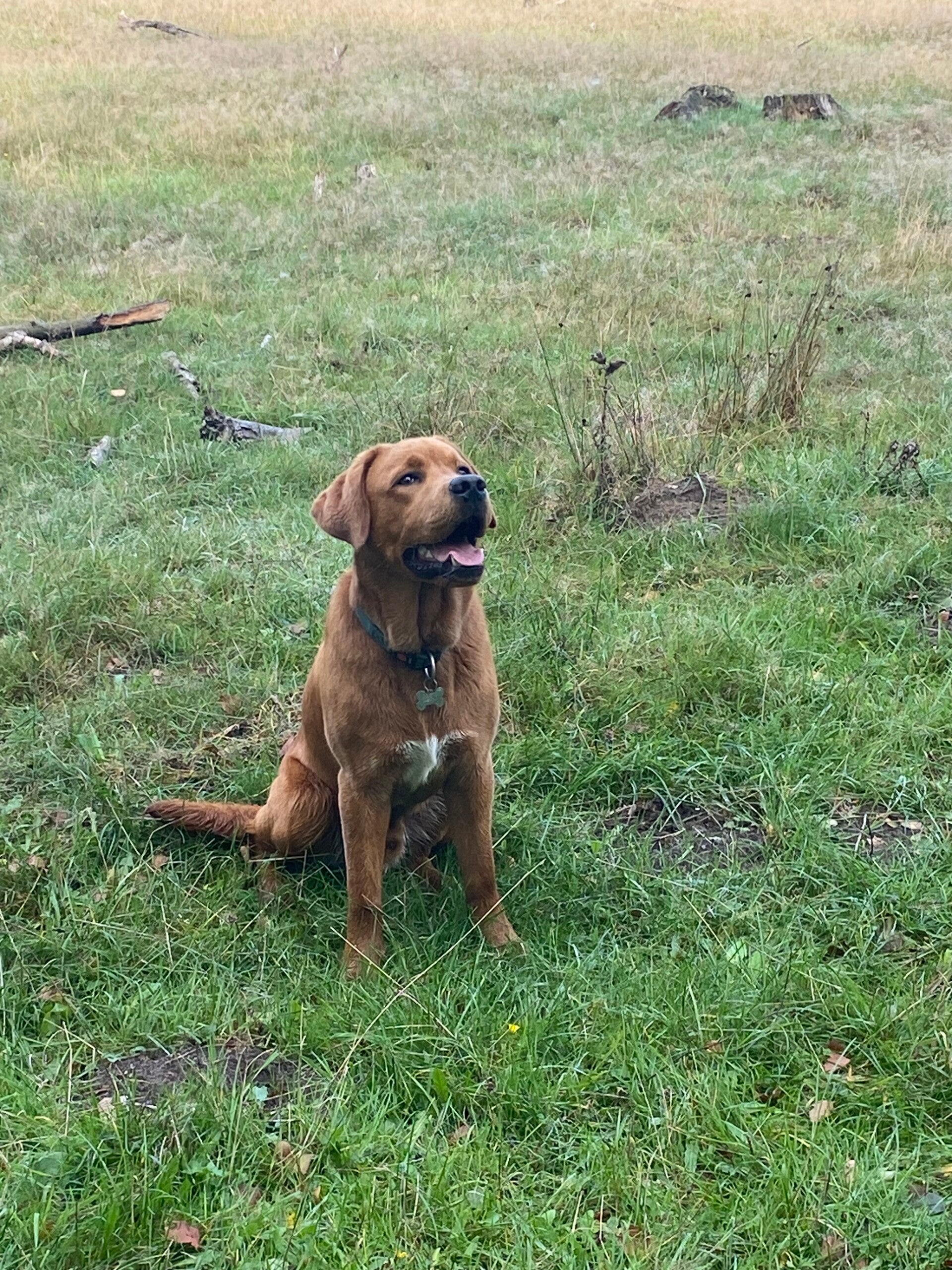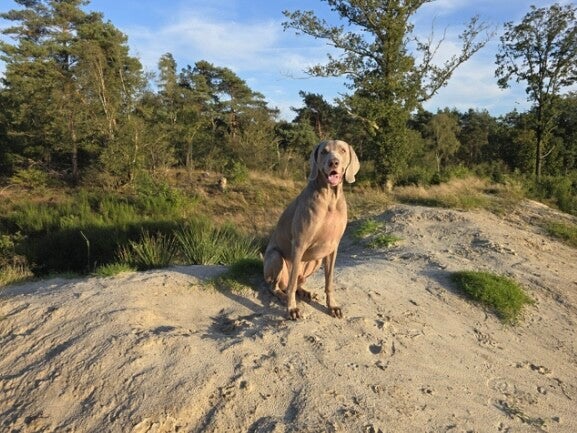 Ligging van het huisje midden in het bos. Omheind voor de hond. Hij wist als 11 maand oude hond bijna niet wat hem overkwam. Zoveel ruimte voor een stadshond.